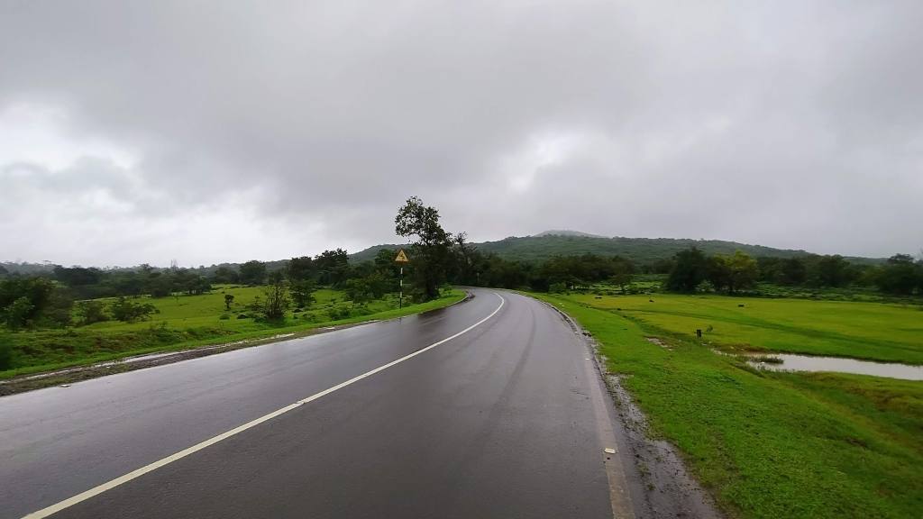The moment we started our drive on NH66, we were greeted with lush greenery all around. It kept on raining – sometimes light drizzle to sometimes heavy rains – but we didn’t complain and it were these very rains which were responsible for the lush fields and farms all along on the sides of the highway.